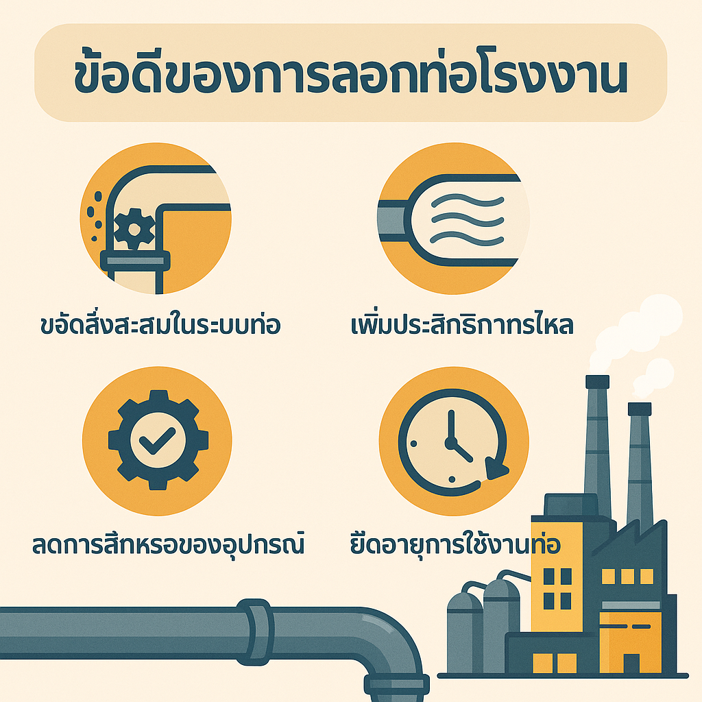 ระบบท่อในโรงงานอุตสาหกรรมเป็นหัวใจสำคัญของการผลิต เพราะใช้ในการลำเลียงสารต่าง ๆ เช่น น้ำ สารเคมี ของเสีย หรือไอน้ำ หากท่อเหล่านี้เกิดการอุดตันหรือเสื่อมสภาพ อาจทำให้กระบวนการผลิตหยุดชะงักหรือเกิดความเสียหายตามมาอย่างร้ายแรง การ ลอกท่อ จึงเป็นขั้นตอนบำรุงรักษาที่จำเป็นอย่างยิ่ง ซึ่งมีข้อดีมากมาย ดังนี้